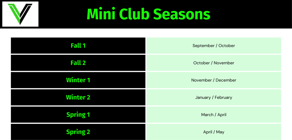 Each session costs $350, which includes 11 practices, 1 t-shirt and a season ending tournament against other mini club teams from other clubs. Payments can be split into two payments when registering. Sibling Discounts available.